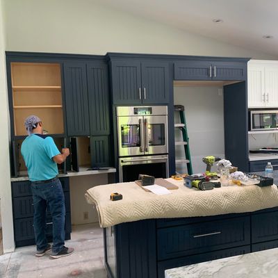 Once your file enters into production, we will transform the raw materials into the finished product. Every Cabinet is crafted and undergoes 8 major steps in the manufacturing process. Unfortunately, patience is required during this time, as we want to ensure everything is perfect and work by hand is intense. Once your cabinets are in the final assembly stage, we will be calling to schedule the install or schedule of pickup.